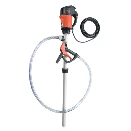 Vorkonfektioniertes Pumpen-Set zum Fördern von Schaummittel und niedrig konzentrierten Säuren und Laugen aus 200 l Fässern (Eintauchtiefe 1000 mm). Bestehend aus Fasspumpe F 430 mit Gleitringdichtung, Außenrohrwerkstoff Polypropylen, Kollektormotor F 458, Schlauchleitung, Zapfpistole und Fassverschraubung.